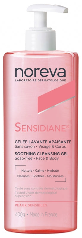 Mitrinošas un nomierinošas vielas satur Noreva Sensidiane, kas palīdz nomierināt apsārtumu un diskomfortu. bieži saistīta ar jutīgu ādu. Šis gēls nodrošina būtisku mitrināšanu, atstājot ādu maigu un elastīgu pēc katras lietošanas reizes.